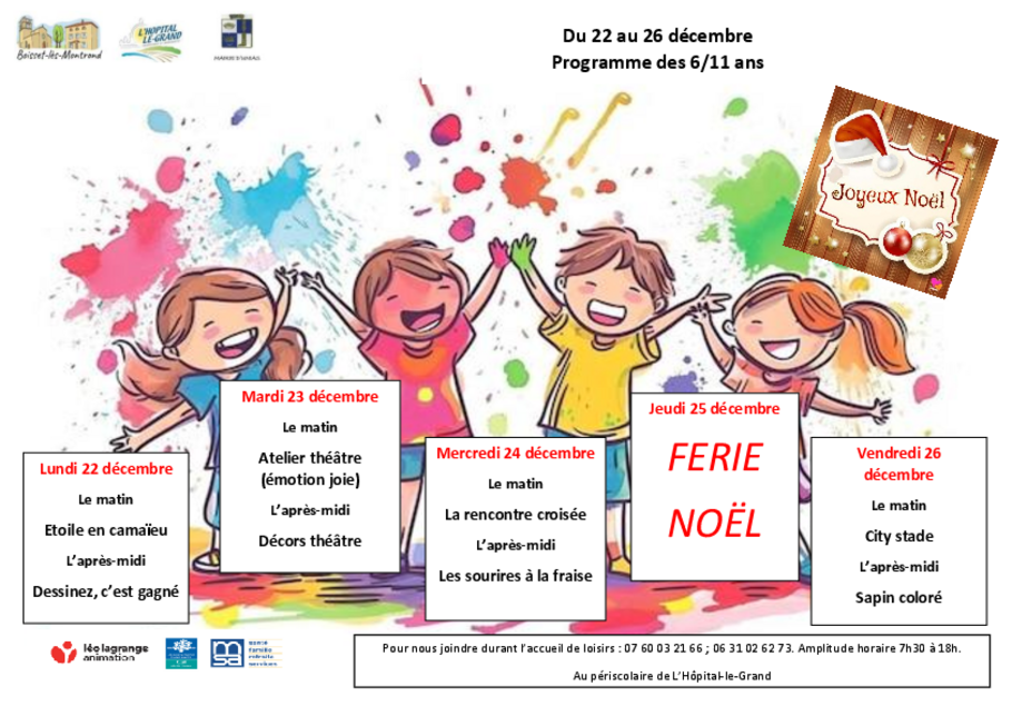 Attention, pour le vendredi 26 décembre si nous avons moin de huit enfants, nous serons contraints de fermer l'accueil.