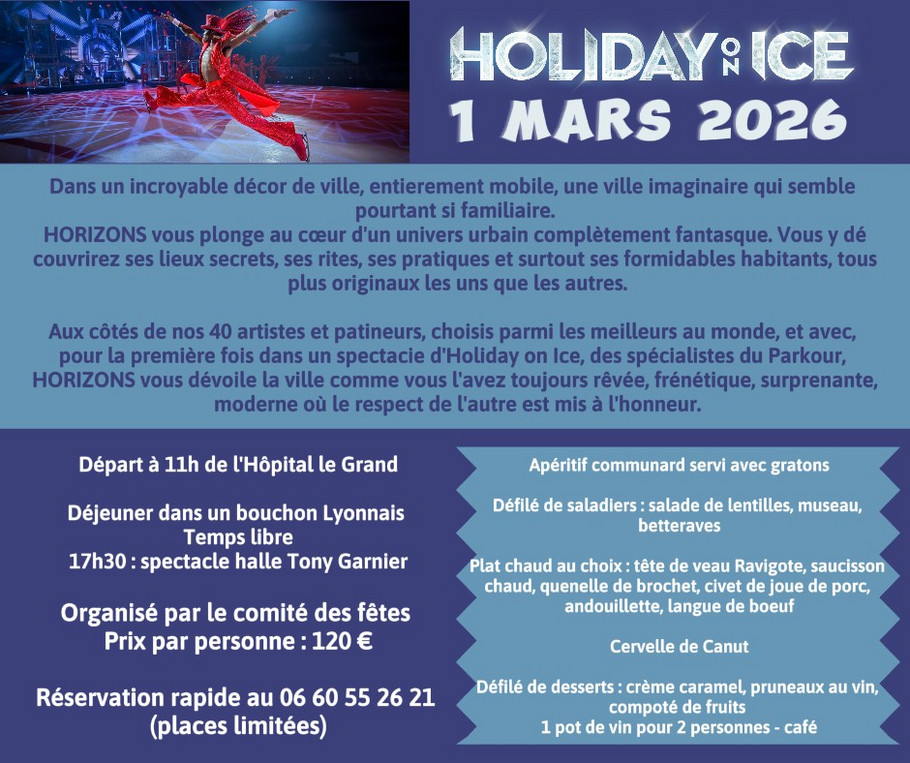 Organisé par le comité des fêtes Prix par personne : 120 €Réservation rapide au 06 60 55 26 21 (places limitées) Ajouter à mon Calendrier (.ics) Le 01/03/2026 De 11h00 à 21h00 Retour