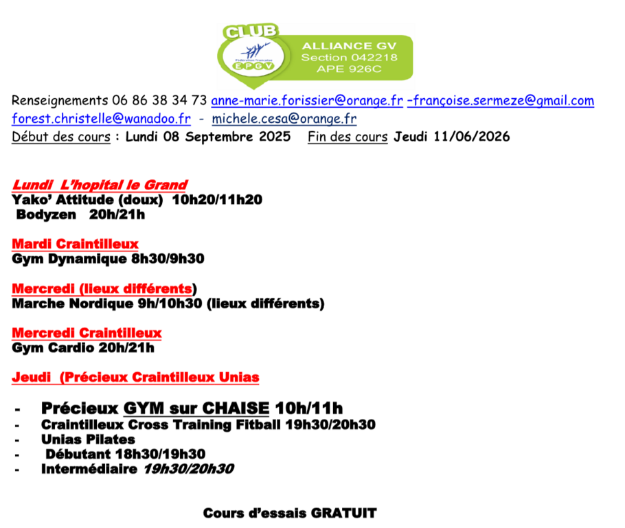 Association adhérente EPGV : Organisme national regroupant les clubs dispensant des Cours de Gymnastique